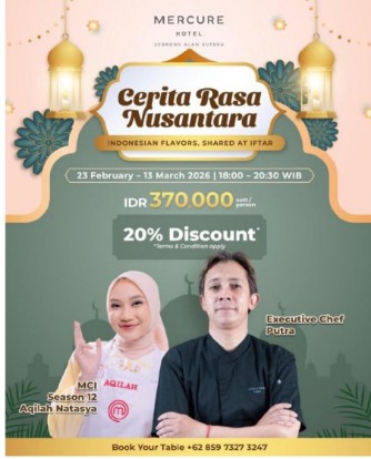 Dalam menyambut bulan suci Ramadan, Mercure Serpong Alam Sutera menghadirkan pengalaman Iftar spesial yang berlangsung mulai 23 Februari hingga 13 Maret 2026.